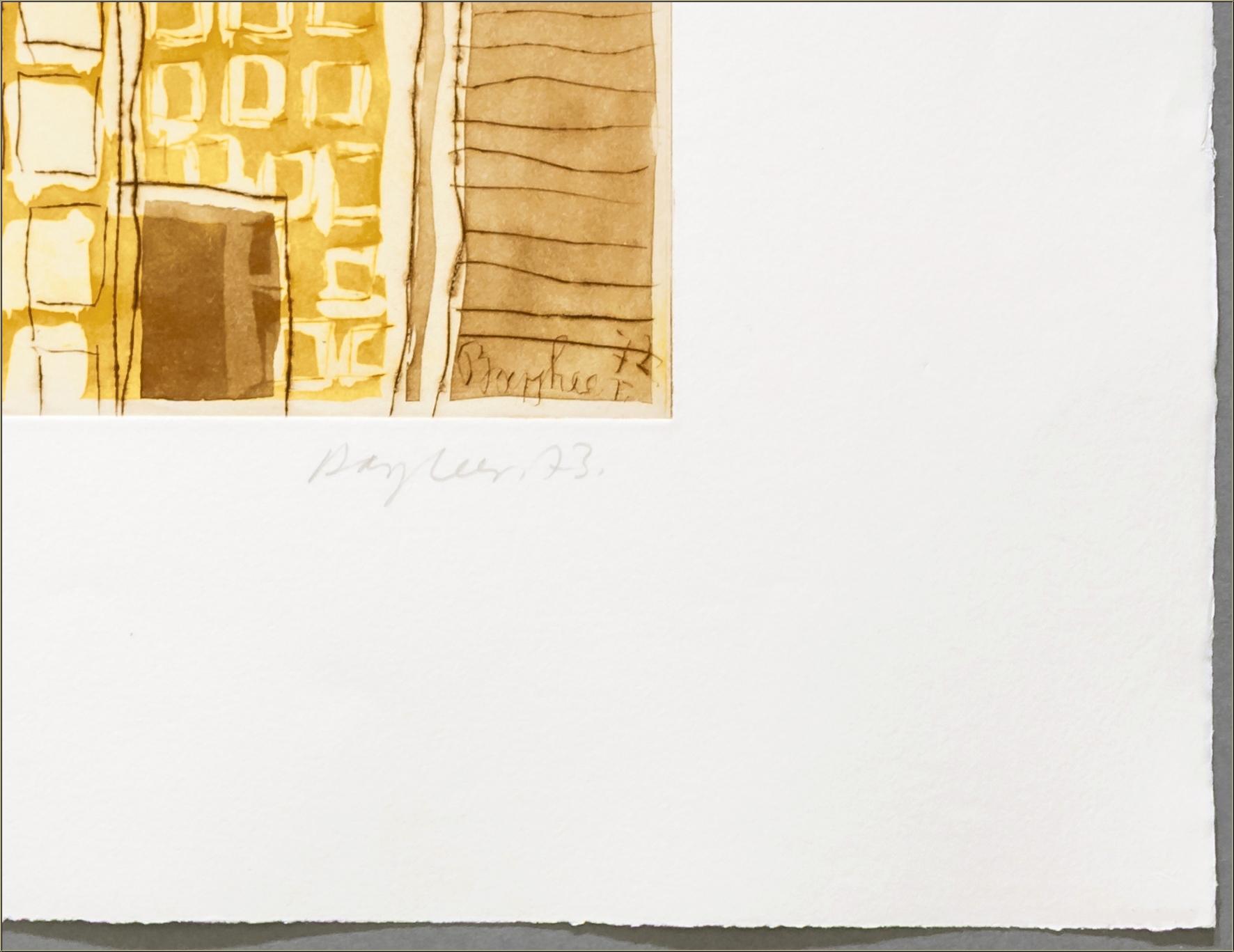 Après la Seconde Guerre mondiale, la petite ville de Forio, sur l'île italienne d'Ischia, est devenue la résidence d'élection d'Eduard Bargheer, puis sa résidence d'été après son retour à Hambourg. Ces deux lieux de vie ont été pour Bargheer des motifs bienvenus à immortaliser dans ses œuvres. Graveur de talent, il réussit à donner à ses aquatintes l'effet laqué de l'aquarelle, leur conférant ainsi un caractère unique. Nous proposons ici l'un des 65 exemplaires numérotés et signés sur papier BFK Rives.